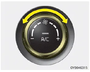 Beim Drehen des Reglers wird die Temperatur in Schritten von 0,5 °C erhöht oder verringert. Wenn die niedrigste Temperatur gewählt wird, bleibt die Klimaanlage dauerhaft eingeschaltet.
