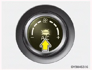 Drücken Sie die Taste A/C, um die Klimaanlage einzuschalten. Die Kontrollleuchte im Schalter leuchtet bei eingeschalteter Klimaanlage auf. Um die Klimaanlage abzuschalten, drücken Sie nochmals die Taste A/C.